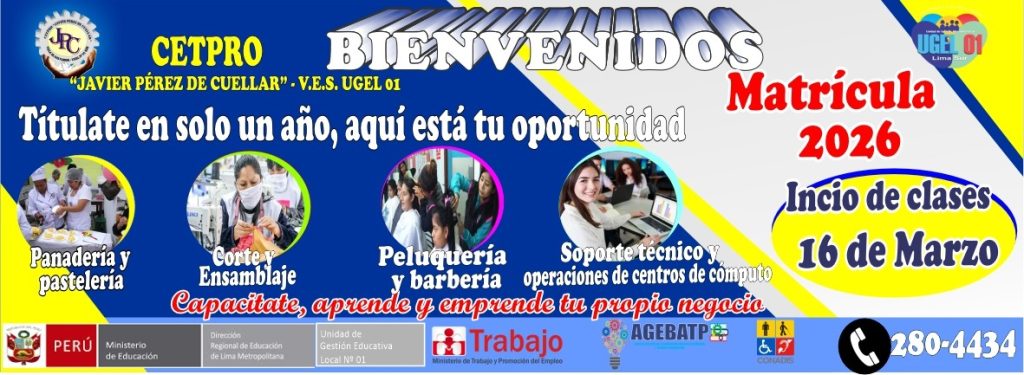 Como parte de las actividades de la celebración del mes patrio, estudiantes del CETPRO Javier Pérez de Cuellar, participaron en la “I Expo Feria de Emprendimiento de Estudiantes 2025” llevado a cabo el día viernes 18 de julio del 2025 en la Explanada de la Alameda Cesar Vallejo, frontis de la Municipalidad de VES, evento organizado por la Red de CETPROs de Villa El Salvador en alianza con la Municipalidad Distrital, lugar donde los estudiantes demostraron a la comunidad en general sus logros de aprendizaje de formación técnica con una exposición- venta de sus productos y prestación de servicios de sus emprendimiento, corte de cabello, peinados, disfrute de deliciosos postres y comidas, venta diversa de prendas de vestir, artículos para el hogar, números artísticos, entre otros; actividad que contó con la presencia de Autoridades de la Ugel01; estudiantes, así como público en general. FELICITACIONES